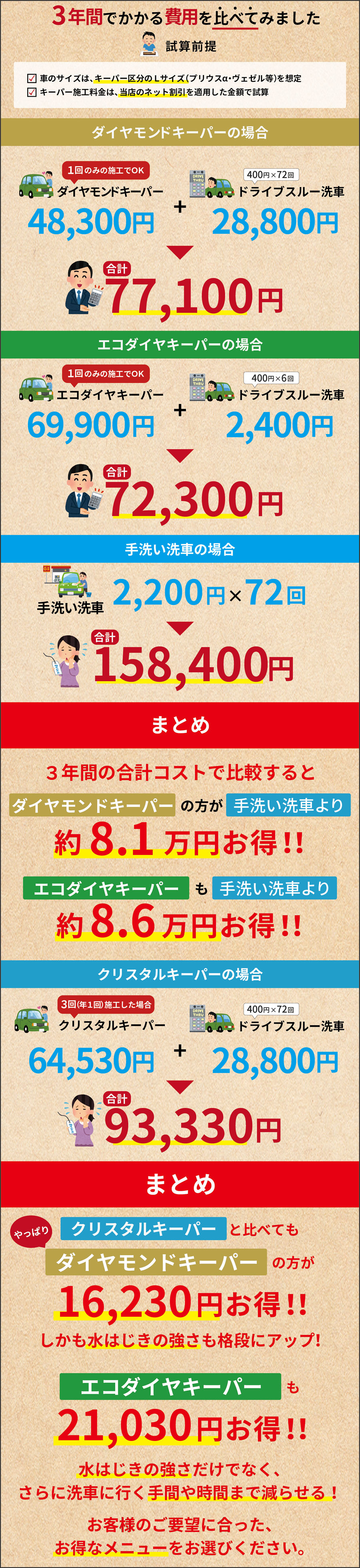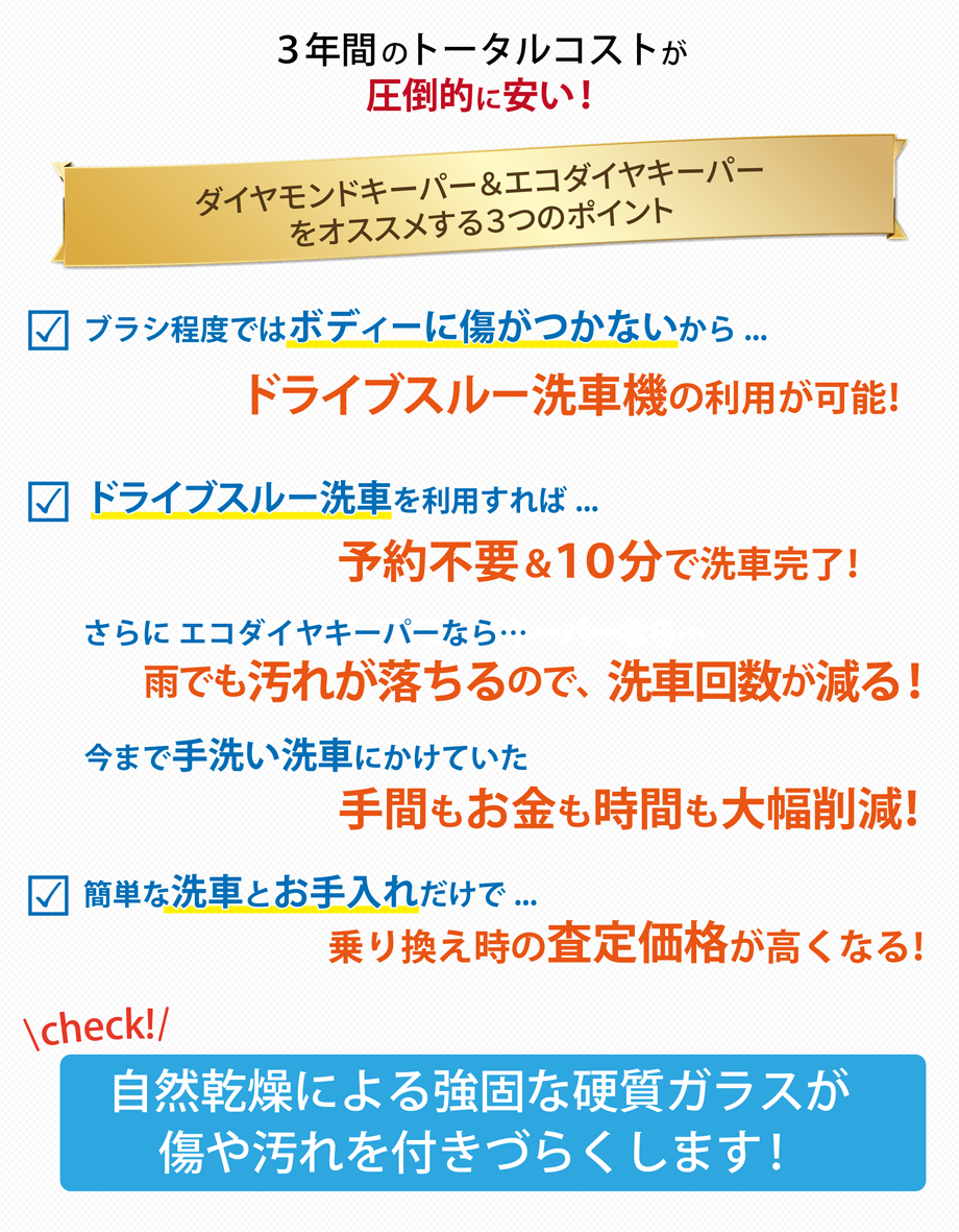 カーディーラーや車販売店のコーティング料金より断然お得!